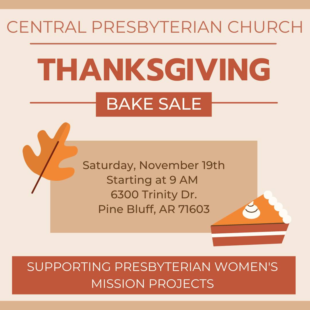 The Annual PW Bake Sale returns! Need a pie, cake, rolls, or a selection of other baked goods for your Thanksgiving feast? Stop by on Saturday, Nov. 19th and pick up some delicious treats while helping our Presbyterian Women fund their mission campaigns! We’ll see you there!!!!