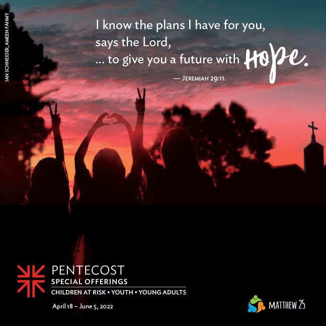 The Pentecost Offering unites us in a churchwide effort to support young people in Christ and inspire them to share their faith, ideas, and unique gifts with the church and the world.